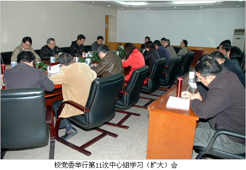 12月25日下午,党委书记马国防主持召开今年第11次中心组学习(扩大)会,传达学习中央和全省经济工作会议精神。在校党委委员、各部门负责人参加学习。