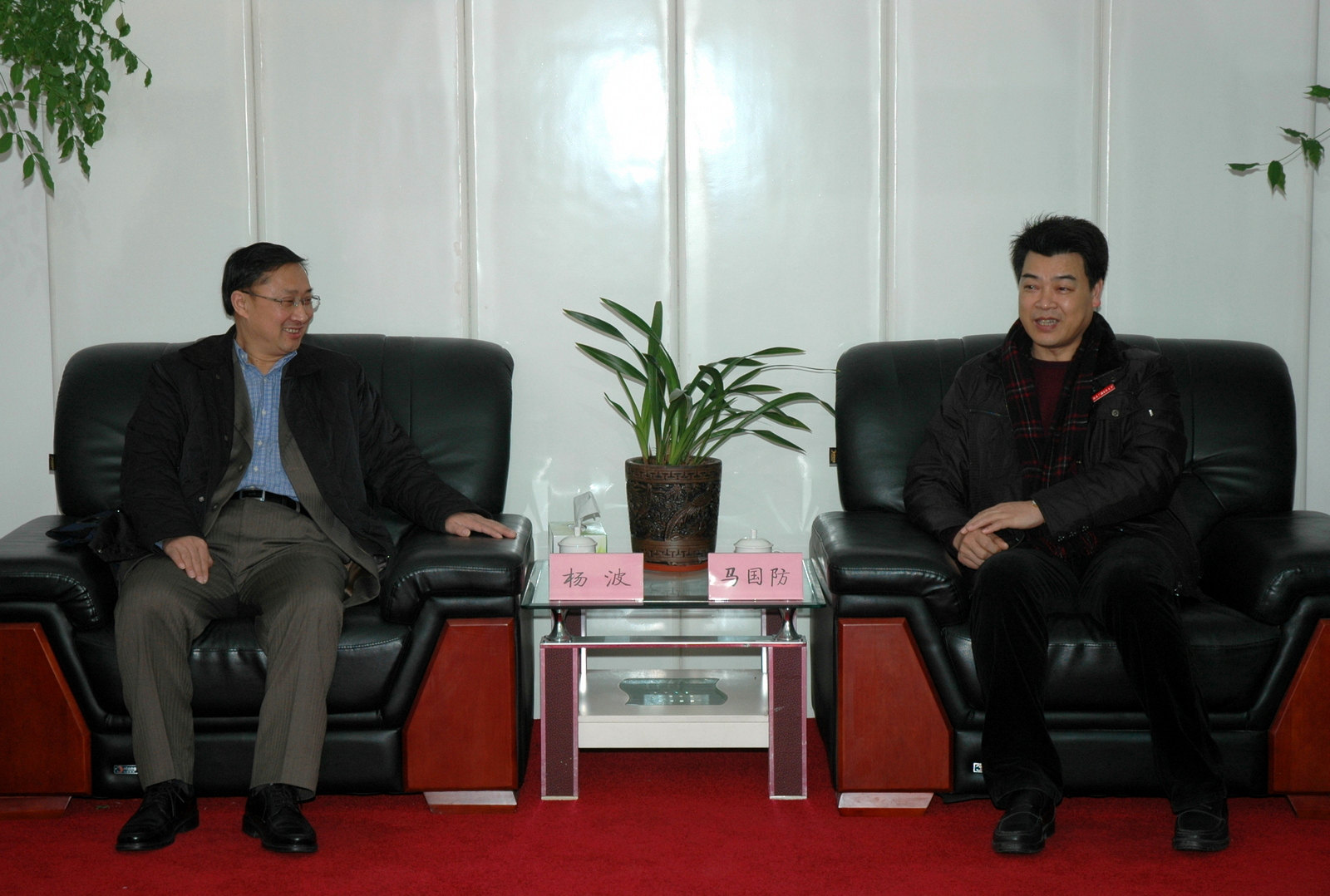福建电大党委书记马国防(右)与四川电大副校长杨波(左)