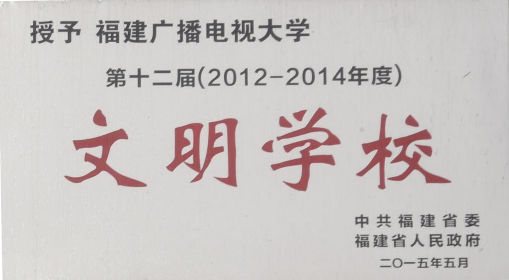 2.福建广播电视大学、桂山校区获福建省“第十二届(2012-2014年度)文明学校”荣誉称号