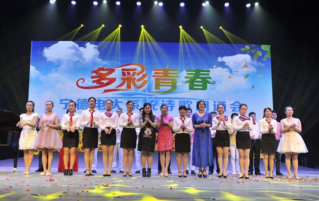 多彩青春,诗韵流长。为弘扬“五四精神”和加强宁德电大系统文化建设,凝聚系统合力,充分展示电大系统师生风采,增强青年师生社会责任感和使命感,展示宁德电大人良好的精神风貌。5月6日晚,由中共宁德市委宣传部、宁德市文化广电新闻出版局、宁德广播电视大学联合主办,宁德市艺术馆协办的宁德电大系统“多彩青春”诗歌朗诵会在宁德市艺术馆举行。宁德市人民政府副市长王世雄,宁德市政协副主席黄家盛, 福建广播电视大学副校长沈光辉,原宁德市政协副主席陶敏辉以及宁德市教育局、宁德市文化广电新闻出版局、宁德市直机关党工委、宁德市政协教科文卫体委员会、闽东日报、福建电大宣传部等部门领导出席,300多名电大师生观看了演出。