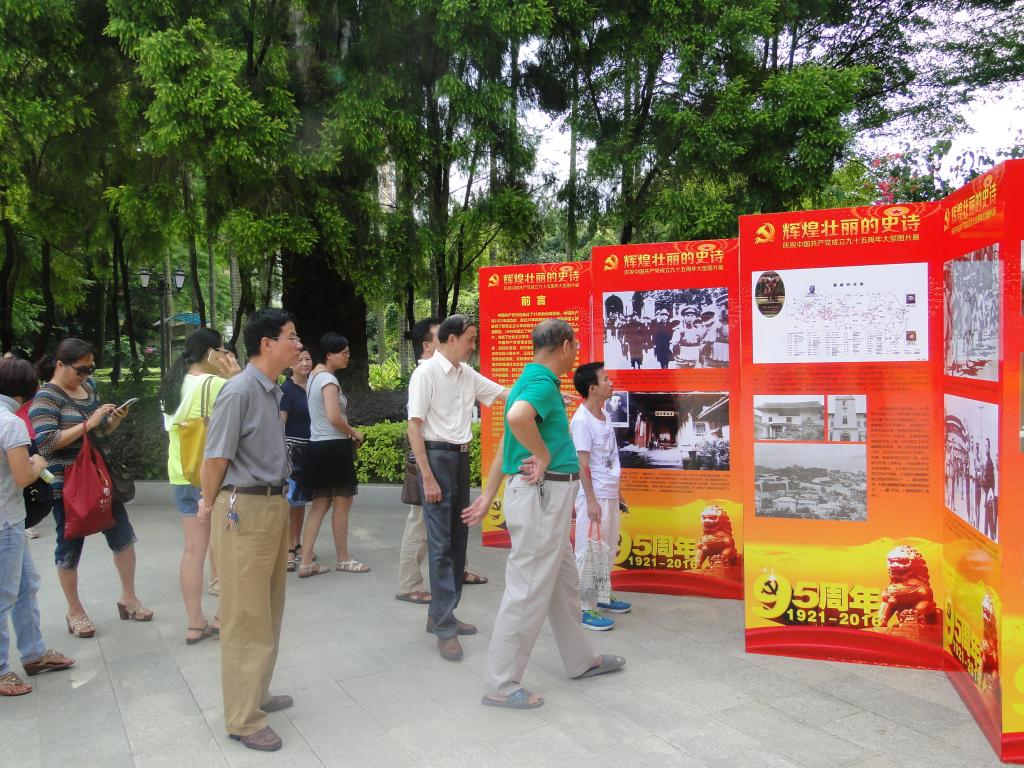 2016年7月1日下午,根据市教育局的要求,结合“两学一做”学习开展,漳州分校组织党员干部、入党积极分子等前往漳州市中山公园参观“庆祝中国共产党成立95周年图片展”,党委书记曾胜利,校长许友明,党委副书记张德群到场参观。