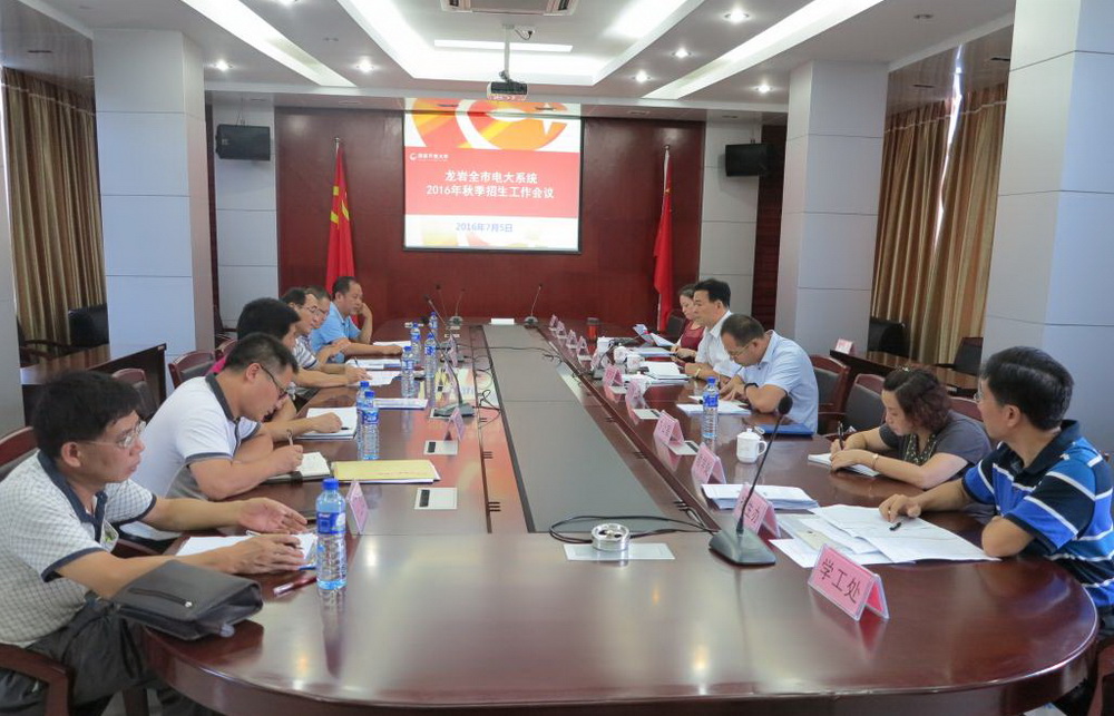 7月5日下午,龙岩电大组织召开了全市电大系统2016年秋季招生工作会议,党支部书记林伟能,省电大招生办副主任任汉卿,各县(市)站长、招生负责人及校内各处室负责人参加会议。校长邓思平主持会议。