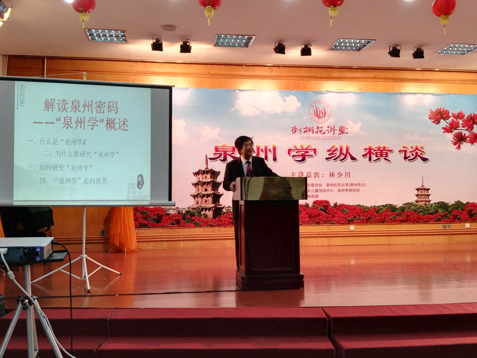 什么是”泉州学”?为什么要研究”泉州学”? 3月31日下午,一场主题为”泉州学”纵横谈的讲座在泉州妇女儿童活动中心开讲。泉州社区大学邀请泉州学研究所《闽南》杂志高级编辑林少川向在场的150多名观众解读泉州密码。