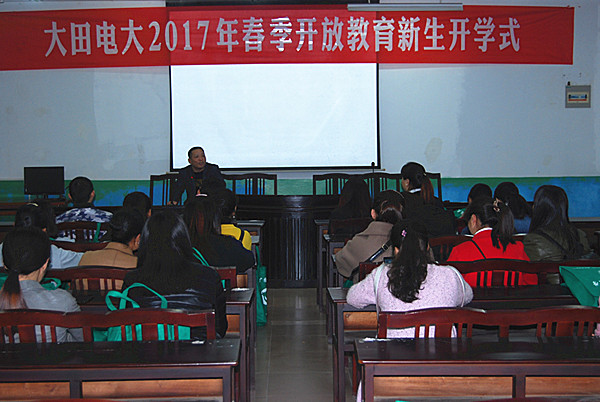 4月2日上午,大田电大2017年春季开放教育新生开学式在二楼多媒体教室举行,各专业班主任、新学员共90多人参加了开学式。