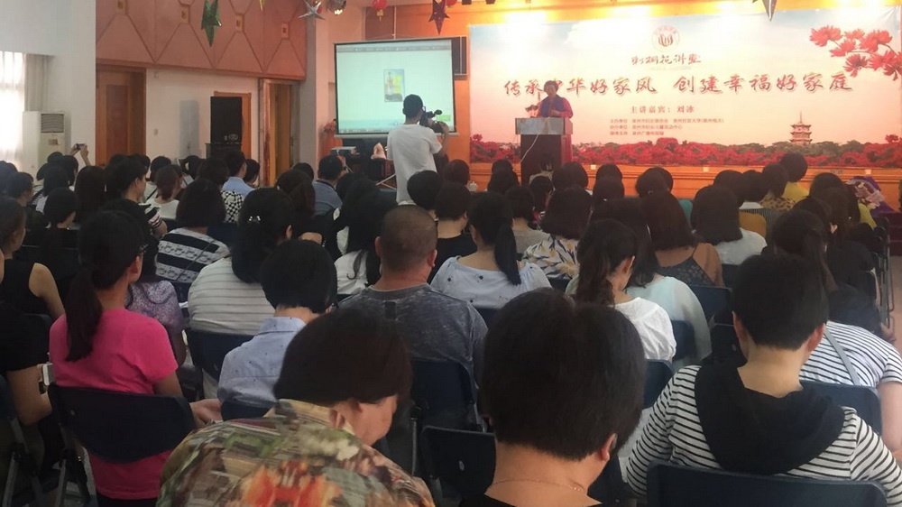 6月7日下午,“刺桐花讲堂”活动在泉州市妇女儿童活动中心举办,泉州市妇联、泉州社区大学、市妇女儿童活动中心等主、协办单位的干部职工共120余人参加活动。此次活动邀请到资深国学教育(女学)教育专家、中国国学专业人才库考评专家委员会委员刘冰带来《传中华好家风,创建幸福好家庭》的专题讲座。
