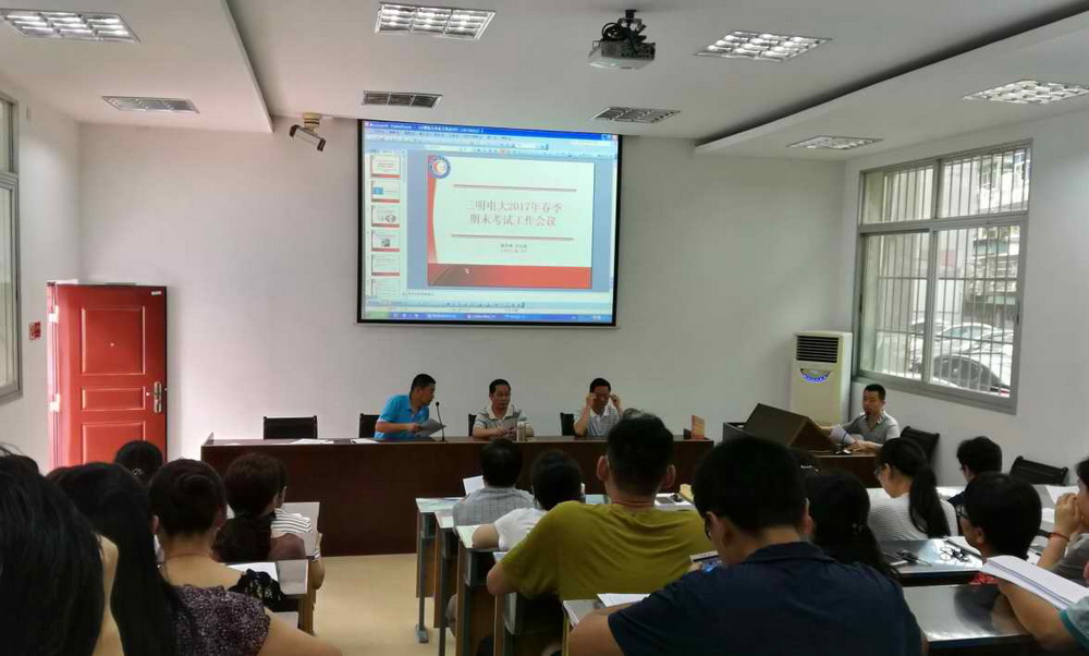 6月23日下午,三明电大召开2016—2017学年第二学期期末考试安全工作会议,校领导和全体监考老师参加会议。