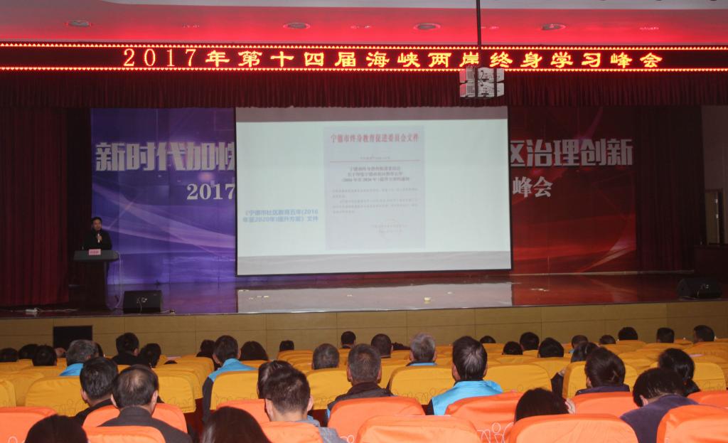 2017年12月4日,“2017年第十四届海峡两岸终身学习峰会”在江苏省苏州市召开,会议由福建省全民终身教育促进会、台湾成人及终身教育学会、苏州终身教育学会主办,两岸四地(台湾、福建、江苏、上海)著名学者和代表近210人参加。