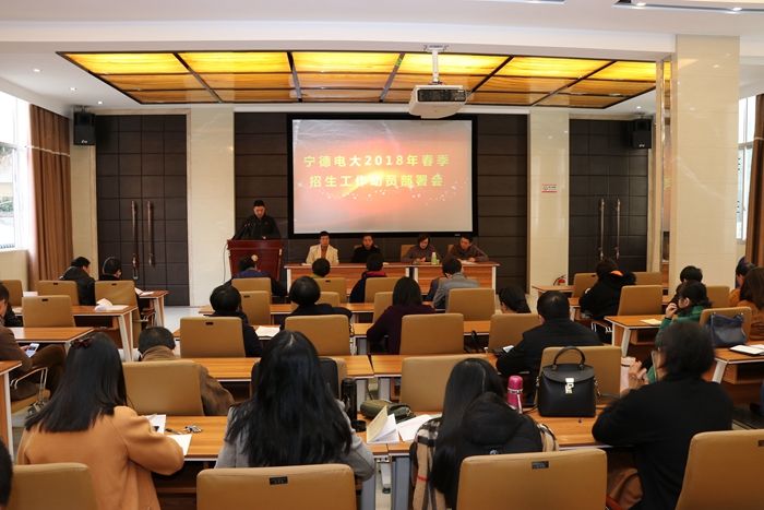 2017年12月27日下午,宁德电大召开2018年春季招生工作动员部署大会,校领导和全体教职工参加,陈丽银副书记主持会议。