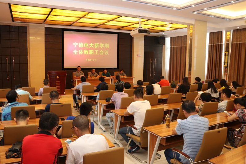 9月3日,宁德电大召开新学期全体教职工会议。党委书记、校长叶祖庚,党委副书记陈丽银,副校长王晓飚,全体教职工参加会议。