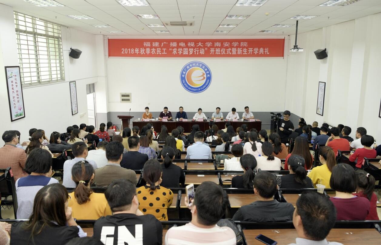 10月21日上午,南安市2018年秋季农民工“求学圆梦行动”开班仪式暨新生开学典礼在南安学院举行,61名农民工圆了自己的大学梦。南安市人民政府副市长王昭昭,南安市总工会党组书记、常务副主席黄海鹰,南安市总工会党组成员、副主席刘甲暖,南安市教育局党组成员、副局长出宏裕等出席开班典礼。