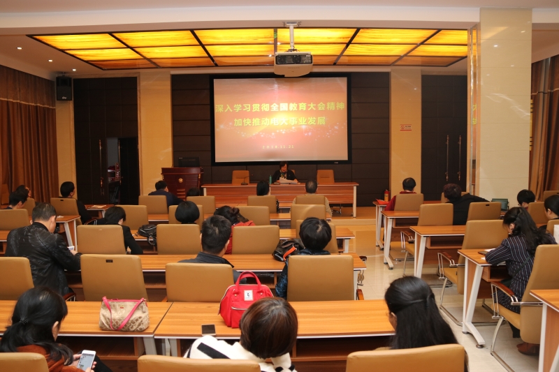 11月21日,宁德电大召开全体教职工大会,党委副书记陈丽银为全体教师作题为《深入学习贯彻全国教育大会精神,加快推动电大事业发展》的宣讲报告。副校长王晓飚主持报告会。