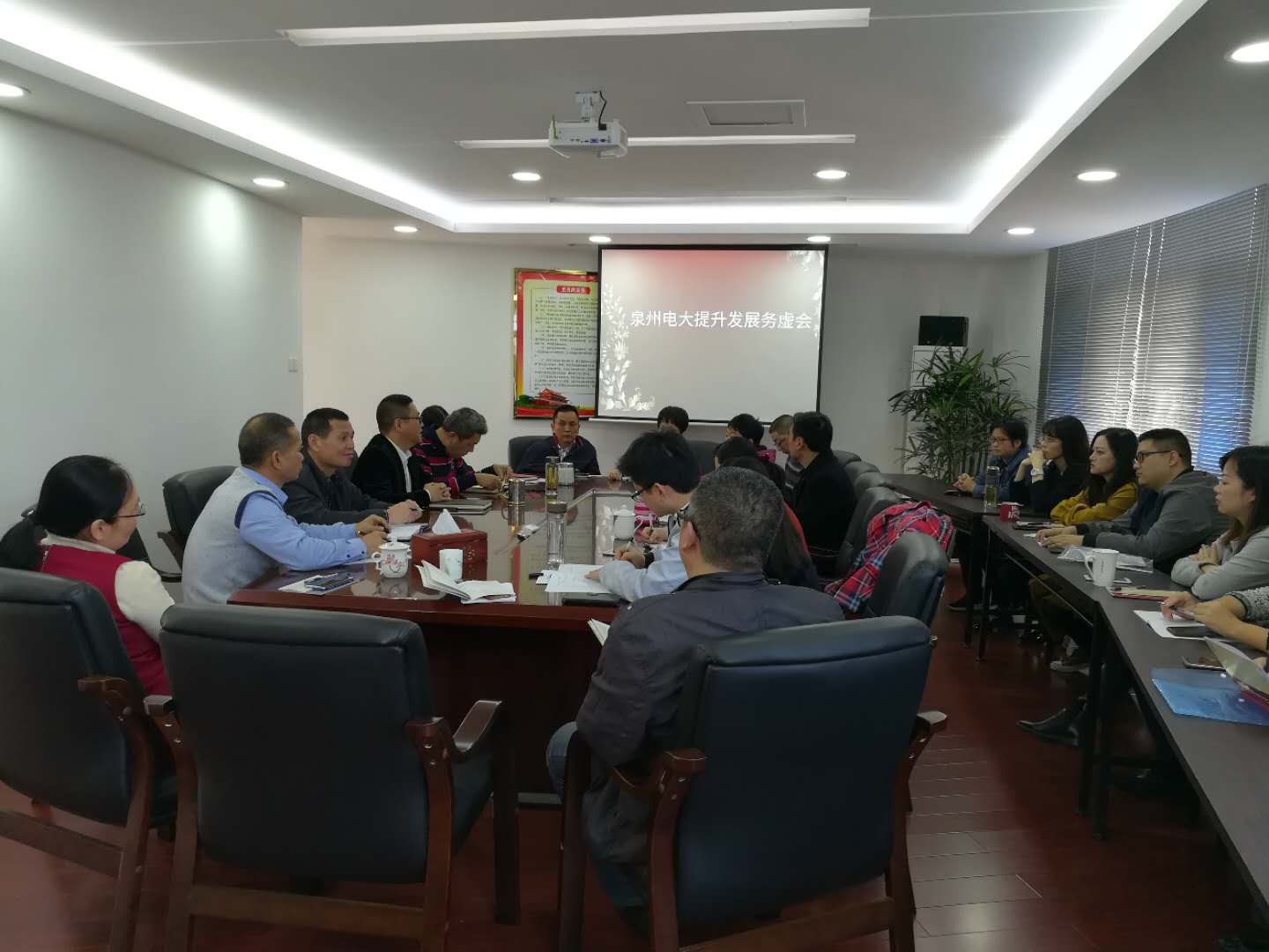 为集思广益、群策群力精心谋划新学年学校各项工作,力促电大转型发展,12月20日下午,泉州电大召开推进泉州电大提升发展务虚会,陈向荣书记(校长)、郑少俊副书记、林春成副校长、全体中层领导干部及专兼职班主任参加了此次会议。