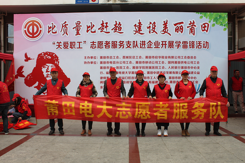 为深入贯彻落实习近平新时代中国特色社会主义思想和党的十九大精神,进一步营造向上向善、互帮互助的良好社会风尚,3月5日,莆田电大组织志愿服务小分队配合莆田市总工会,在黄石工业园区启华鞋业公司开展“比质量比赶超·建设美丽莆田”志愿服务活动,为在场的企业职工提供“农民工圆梦计划”本专科学历提升咨询、宣传。