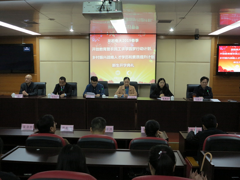 3月23日上午,龙岩电大举行2019年春季开放教育暨农民工求学圆梦行动计划、乡村振兴战略人才学历和素质提升计划新生开学典礼。市总工会党组成员、副主席廖婷婷,区委组织部副部长林锦辉,市总工会宣教与网络工作部部长黄秀珍,龙岩电大党支部书记(全面主持党政工作)林伟能出席了典礼,学校全体教职工和2019年春季全体新生参加了典礼,龙岩电大支部委成员、办公室主任邱友祥主持了典礼。