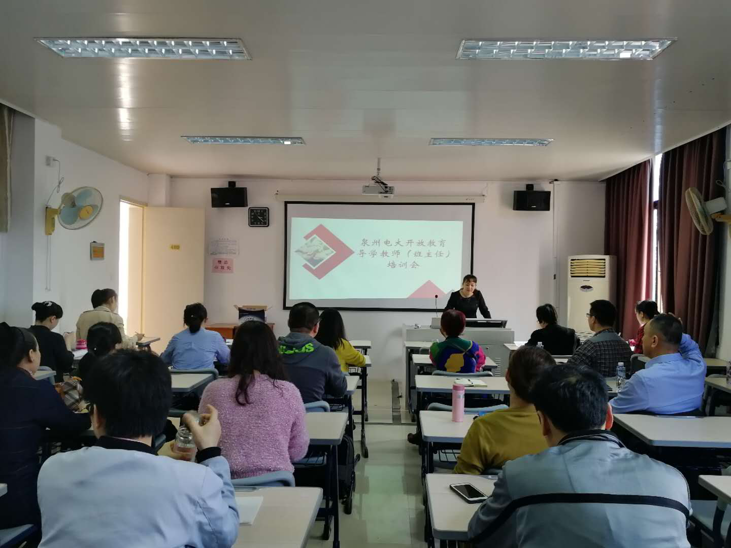 此次培训会由泉州电大具有丰富班主任工作经验的老师进行讲授。授课人员结合自身经验,围绕学生管理服务支持、学籍管理、教学教务、网上作业、集中实践、论文指导和注册缴费等工作内容,用具体的案例和图文进行了生动、系统的讲解。