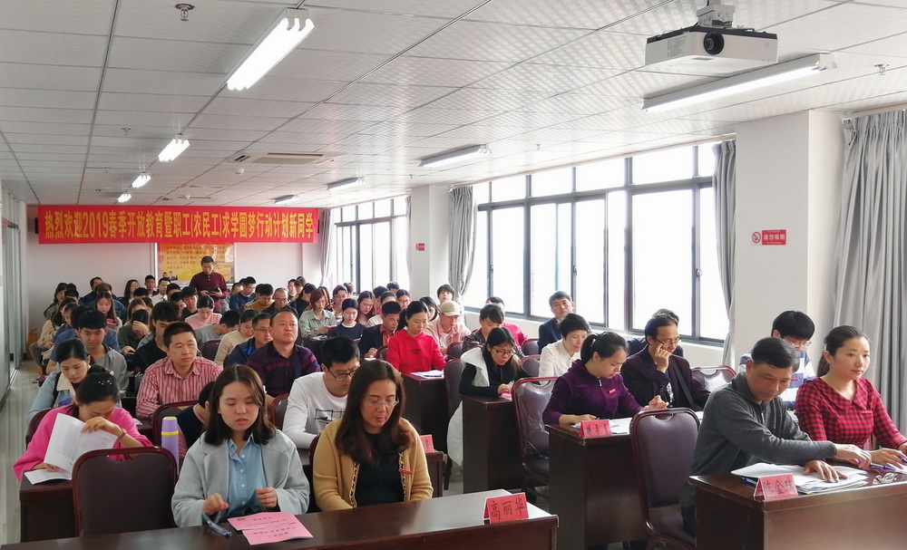 4月7日,由莆田市总工会、莆田市教育局、莆田电大联合主办的2019年春季开放教育暨职工(农民工)“求学圆梦”行动新生开学典礼在莆田电大会议室举行。莆田电大书记林荣斌,市总工会副主席黄芳、宣传与网络部部长郑文煌,市教育局高校与职成教科科长陈明华,莆田电大相关处室负责人、专业组织员以及300多名新学员参加了开学典礼。开学典礼由莆田电大副书记苏健主持。