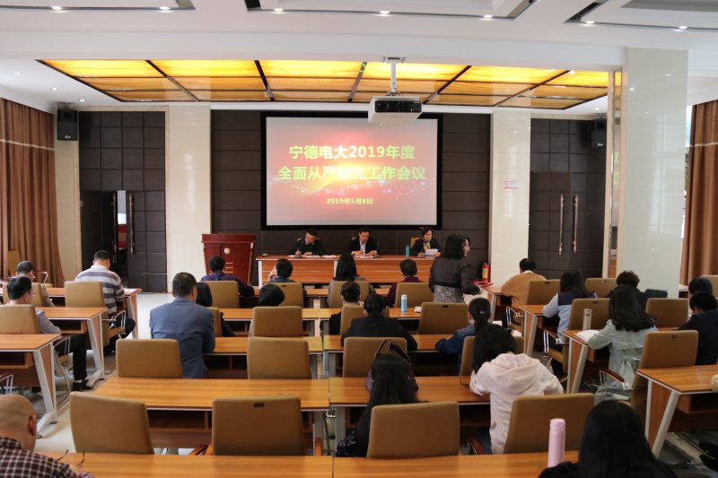 5月8日下午,宁德电大在学校演播厅召开2019年度全面从严治党工作会议,深入学习贯彻习近平新时代中国特色社会主义思想和党的十九大精神,落实全国全省全市教育大会、省纪委十届四次全会、市纪委四届四次全会和2019年度全市教育系统党建暨全面从严治党工作视频会议精神,回顾总结学校2018年全面从严治党工作,分析当前形势,部署2019年工作。党委书记、校长叶祖庚出席会议并讲话,副校长王晓飚传达中央和省、市有关会议精神,党委副书记陈丽银主持会议,全体教职工参加会议。
