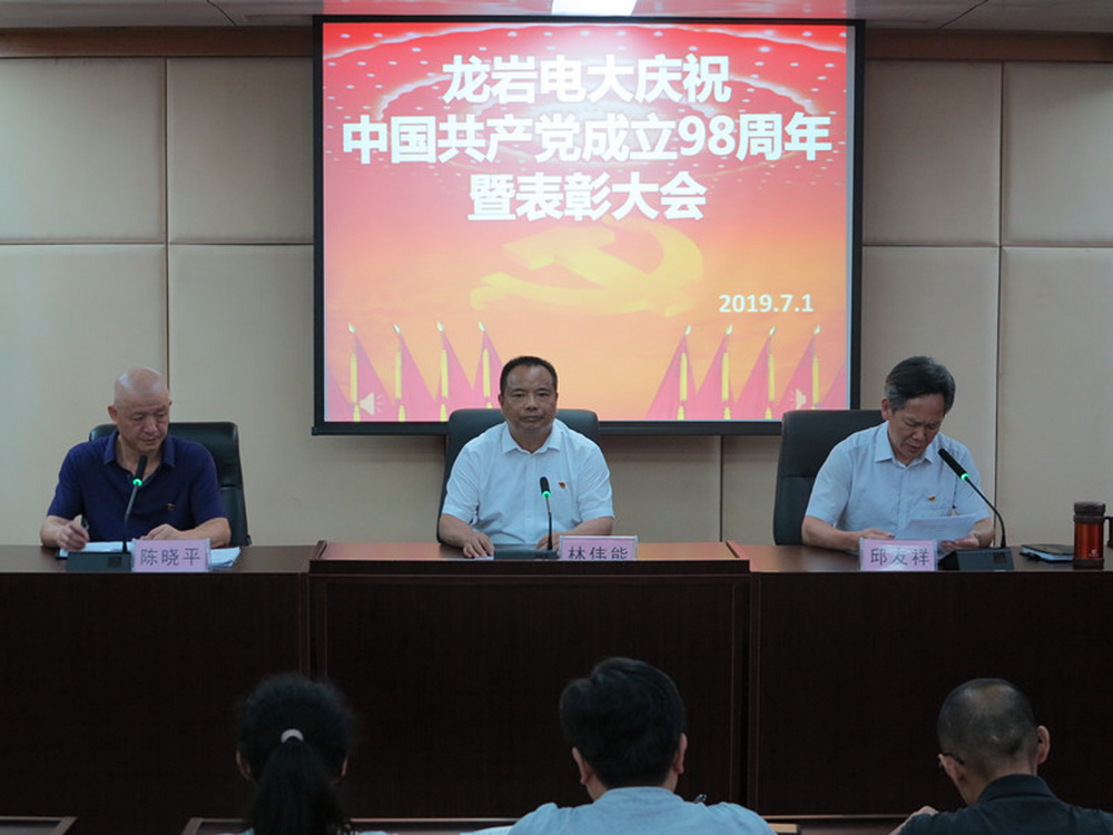 7月1日下午,龙岩电大组织召开庆祝中国共产党成立98周年暨“七一”表彰大会,全体党员参加会议。学校党支部书记林伟能发表讲话。支部委员、办公室主任邱友祥主持会议。