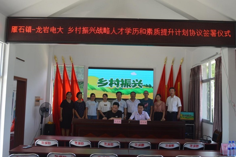 林伟能感谢雁石镇党委对龙岩电大办学的肯定和支持。他表示,龙岩电大独特优质的办学特点和丰富的办学经验,将助力雁石镇党委班子培养更多更优的乡村建设人才,补齐雁石镇在乡村五大振兴方面的“人才振兴”短板;将以学历班为依托,打造“学历+党建、学历+文化、学历+组织、学历+旅游”等一系列新农村建设品牌。同时,结合雁石乡镇(村)干部工作实际,在办学管理模式、专业设计形式、教学实践内容、优惠政策倾斜等方面,做到“量身定做、富有特色”,与雁石镇党委班子携手努力建立一支政治过硬、本领高强,懂农业、爱农村、爱农民的实用人才队伍,为乡村振兴贡献力量。