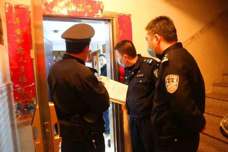 19春辅警行政管理专科班赖礼培与同事在小区入户做排查