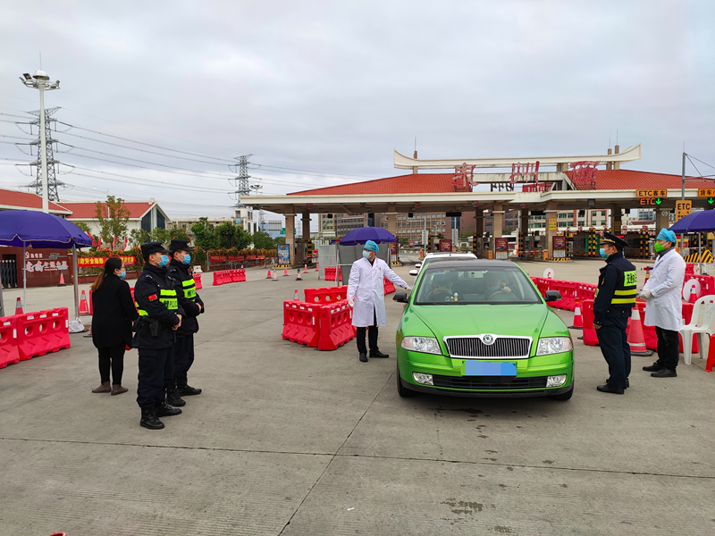坚守岗位,在高速路口检查来往车辆、检测驾乘人员体温;