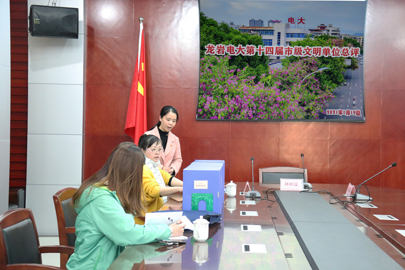 1月19日下午,中共龙岩市委文明办考评组一行3人莅临龙岩电大开展第十四届市级文明单位总评工作。考评组通过实地察看电大的环境建设及硬件设施、审阅材料、开展调查问卷,全面考察电大2018-2020年的文明创建工作。