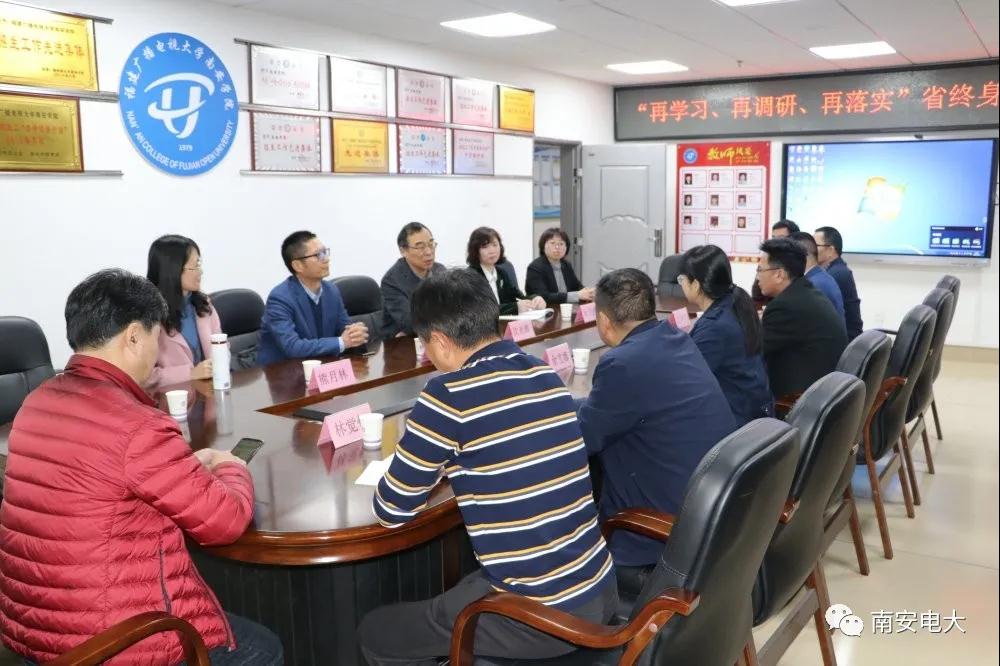 为认真贯彻省委关于开展“再学习、再调研、再落实”活动工作部署,3月10日下午至11日上午,福建开放大学副校长沈光辉、终身教育服务中心主任吴盛雄、党政办副主任林卫民、培训学院培训科副科长熊月林、教务处终身教育学分银行办公室郭淑贞等一行5人莅临南安学院开展终身教育、社区教育调研指导工作,南安市教育局党组成员、副局长余雪娜、职社科科长魏健晓陪同调研。