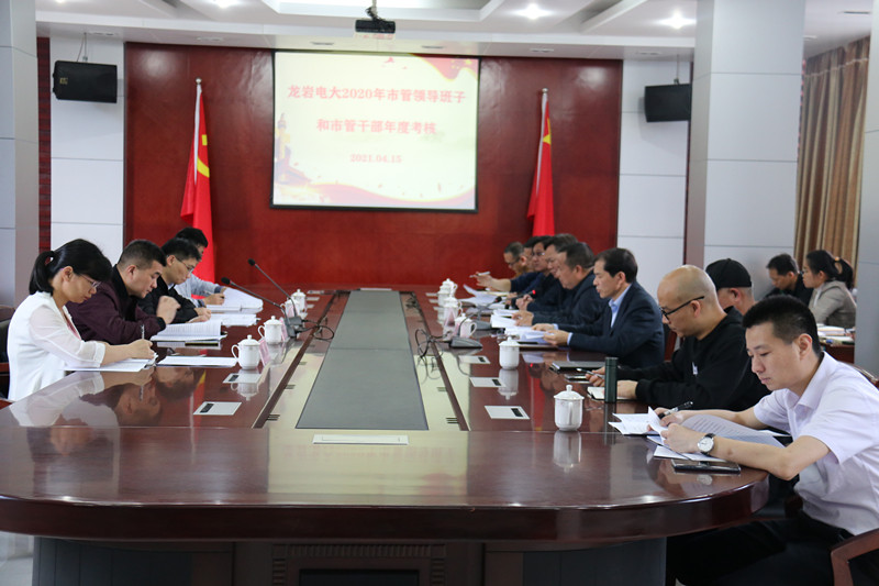 4月15日下午,龙岩市委组织部党管科科长叶勇率考核组一行莅临龙岩电大开展2020年市管领导班子和市管干部年度考核工作,考核工作会议由党支部书记林伟能主持。学校全体教职工参加会议。