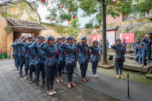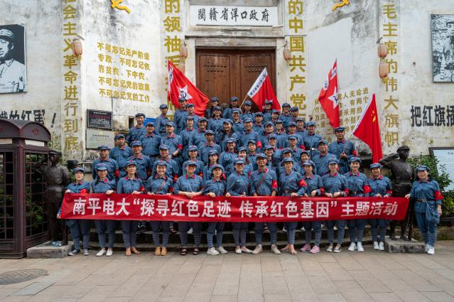 探寻红色足迹,传承红色基因,全体师生身着红军服,满怀崇敬心情,参观学习第一次国内革命战争、抗日战争、第二次国内革命战争遗址、遗迹等。在苏维埃政府旧址,南平电大党总支组织委员朱丹萍同志带领全体党员重温入党誓词,再一次坚定了入党时的决心和信念。
