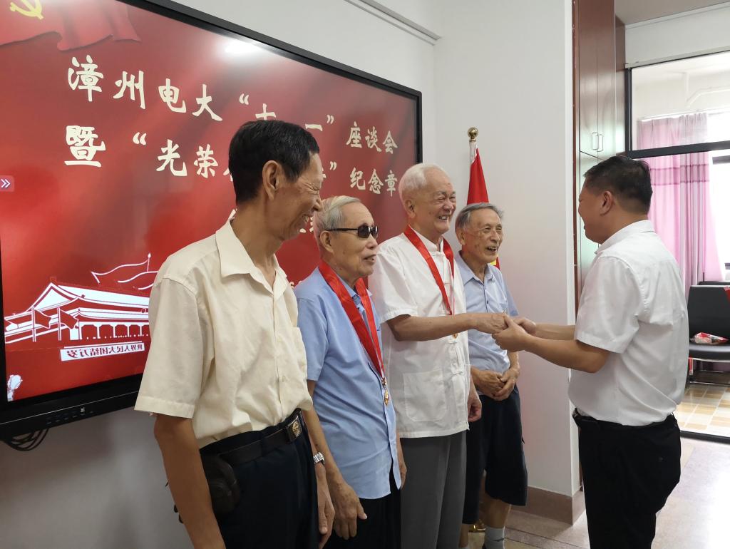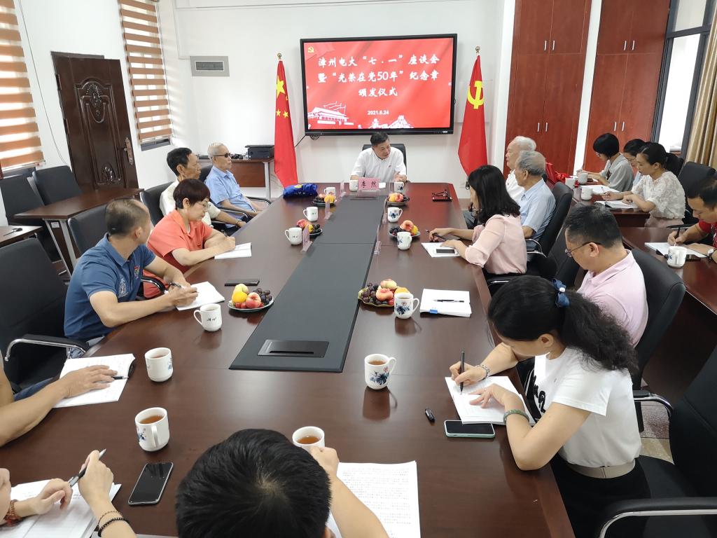 6月24日上午,漳州电大召开“七·一”座谈会暨“光荣在党50年”纪念章颁发仪式,学校在家校领导,各党支部书记,有关部门负责人,年轻党员、青年教师代表参加,学校党委书记、校长李然主持。