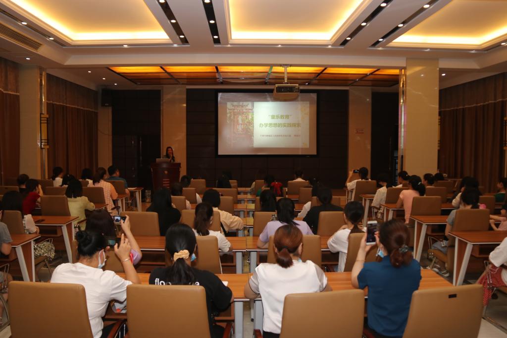 本次讲座主要围绕“童乐教育”办学思想的实践与探索主题展开,讲座内容主要分两部分,一是介绍“童乐教育”办学思想的发展历程、价值体系、理念内涵,二是从童乐之境、童乐之根、童乐之师三重角度系统阐释“童乐教育”的办园宗旨,并结合各种实例进行讲解,生动详实,对幼儿园教学和管理工作都具有较强的指导意义。讲座活动现场气氛活跃。