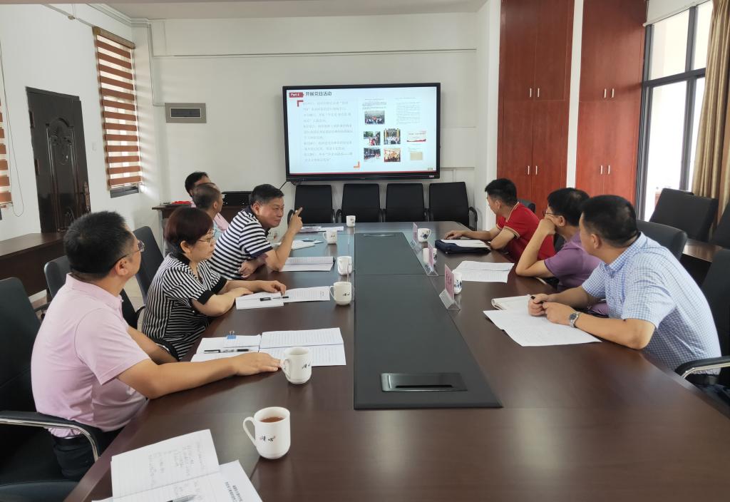 李然从提高政治站位、强化组织领导;创新学习方式、丰富活动载体;践行为民宗旨、突出实践成效和下一步工作思路四个方面进行了汇报,重点汇报了我校近阶段开展的“学党史·诵经典—毛主席诗词朗诵会”“‘4·23世界读书日—行走在书声茶香里’主题茗读会”“相映丹霞红—庆祝建党100周年综艺晚会”“‘七·一’座谈会暨‘光荣在党50年’纪念章颁发仪式”“‘学党史 颂党恩 展风采’主题活动”和“怀念高捷成——朗读及文物展示活动”等特色项目,以及行知图书馆开馆、丹霞堂竣工、“漳州丹霞书院遗迹”列入市级文物保护单位、丹霞读书会纳入省级全民阅读示范点等工作成效。