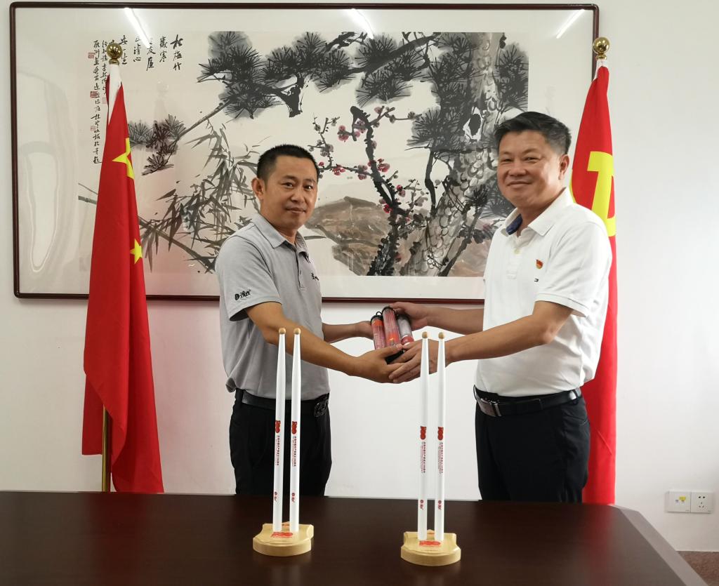 优秀校友谢团东捐赠给母校的建党百年活动纪念鼓槌
