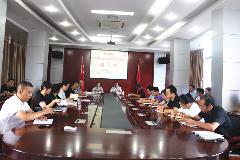 7月20日上午,龙岩电大召开2020-2021学年第二学期闭学式,会议由党支部书记林伟能主持,副校长饶生来、全体教职工参加会议。