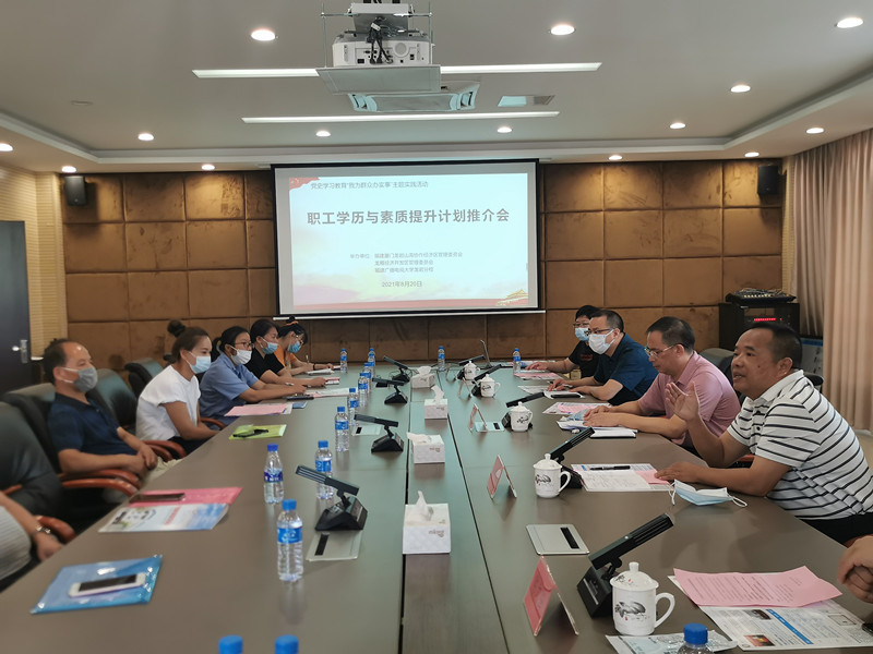 为深入推进党史学习教育,践行“我为群众办实事”活动,8月20日,福建厦门龙岩山海协作经济区管理委员会、龙雁经济开发区管理委员会和龙岩电大在银雁新城联合举办职工学历与素质提升计划推介会,厦龙合作区党工委委员、管委会副主任张发生,龙岩电大党支部书记林伟能,龙雁经济开发区主任谢振浩、副主任陈文强,厦龙合作区土地收购储备中心主任陈满庭出席会议,共有26家入驻银雁新城建设企业参会。