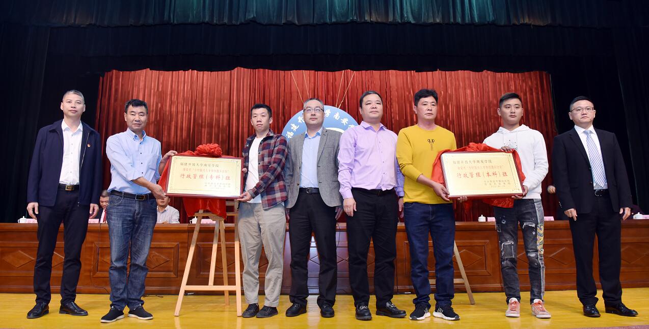 陈向荣、陈少波为南安市“乡村振兴人才学历提升计划”本科班揭牌,裴常山、洪杰辉为南安市“乡村振兴人才学历提升计划”专科班揭牌。