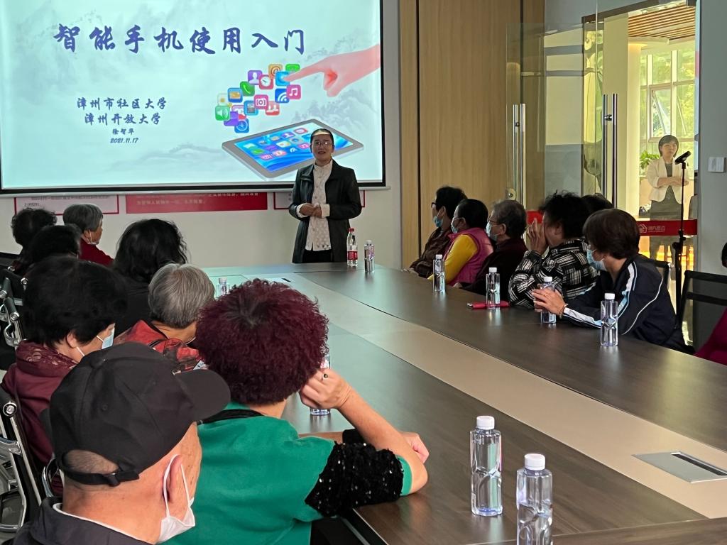 活动当天,徐智华老师为通北街道湖内社区的老年朋友们带去了“智能生活应用及普及”专项培训活动的第一讲“老年人智能手机应用指南”。今年以来,漳州市社区大学为贯彻落实国务院办公厅、教育部办公厅关于广泛开展老年人运用智能技术教育培训的相关文件精神,切实解决老年人运用智能技术困难问题,帮助老年人跨越“数字鸿沟”,启动了“智能生活应用及普及”专项培训活动,系列活动将在全市15个社区全面铺开,让老年人更好地共享信息化发展成果,增强他们的获得感、幸福感。