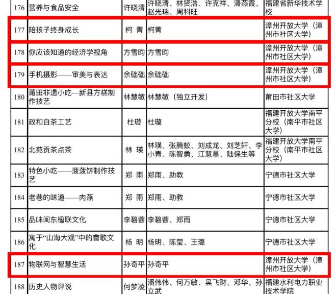 福建省终身教育促进委员会日前公布了“2019-2020年度省级终身教育研究课题结题项目和继续教育网络课程验收通过名单”,漳州开放大学孙奇平等七位老师打造的《物联网与智慧生活》等七门继续教育网络课程通过了项目验收。