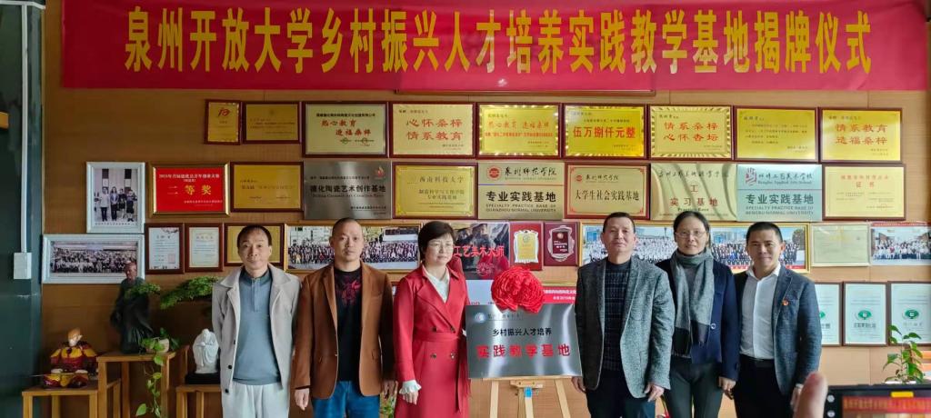 近日,德化电大新增一个陶瓷文化教学实践基地――福建德化陶知然陶瓷文化创意有限公司。泉州开放大学副校长林春成、德化县政府副校级督学陈丽珍为实践教学基地揭牌,泉州开放大学教务处负责人李红萍主持揭牌仪式。