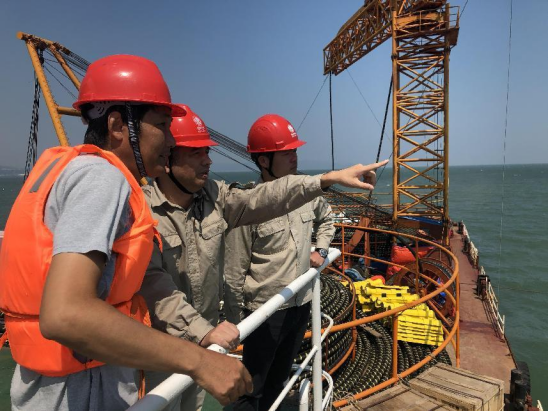 卓继雄(中间)抢修10千伏嵛山海缆工程