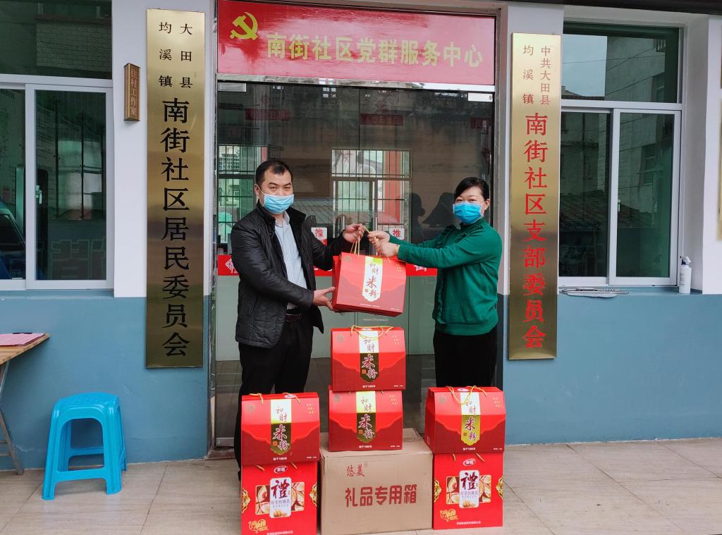 “和财米粉的成长,离不开无数亲戚朋友和邻居的支持,回报社会是我企业家应当的责任。”2020年2月14日下午,柳百财请建成村党支部书记柳传宁帮忙联系,捐赠出100份富硒米粉和100件核桃牛奶,给奋战在新冠肺炎疫情防控一线的村、居委会工作人员。