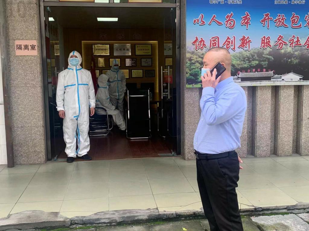 模拟场景二:疫情防控组人员接到某社区电话,得知有考生为新冠此次密接人员,并立即向总指挥报告