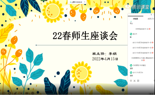 在云端课堂的舞台幕后,不仅有授课教师的辛勤汗水,而且也有着班主任和教务处管理人员的默默支持。疫情发生后,教务处管理人员迅速调整教学方案,进行直播平台操作使用培训,发布云端教学准备要求、进行听评课指标调整、进行直播教学安排通知、直播教学后台技术支持、进行直播教学督导和检查,服务精细到位。尤其在教学督导方面,教务处主任李红萍对各教研组长、班主任和教务处等云端督导组成员提出直播课堂听课督导要求,并亲自旁听参与课堂进行了为期一周的听课督导,在督导后及时提出督导意见,把好教学质量监控关。为了不断提高教学管理水平和教学质量,教务处要求班主任就本学期直播教学进行师生座谈会,收集学员对教师教风、学生学风、教学准备、教学平台使用等方面的意见建议,以便更好的改进,为学员提供更贴心的服务。22春法学本科班主任林惠敏老师提到4月15日召开的师生座谈会时说,座谈会开展比较成功,同学们积极发言,会议活跃氛围浓厚。同学们建议老师上课讲到理论知识的时候多引入案例,发一些相关学习资料。此外,同学们关心课本何时发放、课程安排,并咨询了考试相关事宜、奖学金、上课签到等事宜,同学们对学习充满期待,对学习生活充满热情。会后,第一时间将学生心声向教务管理人员和授课老师进行反馈,他们也及时处理和调整。班主任作为最接近学员的管理者,及时转发学习通知,做好教学意见反馈,进行课前课后教学答疑辅导,不厌其烦,真正成为学生学习的暖心服务者,教师教学的用心辅助者,教务管理的专业实践者。