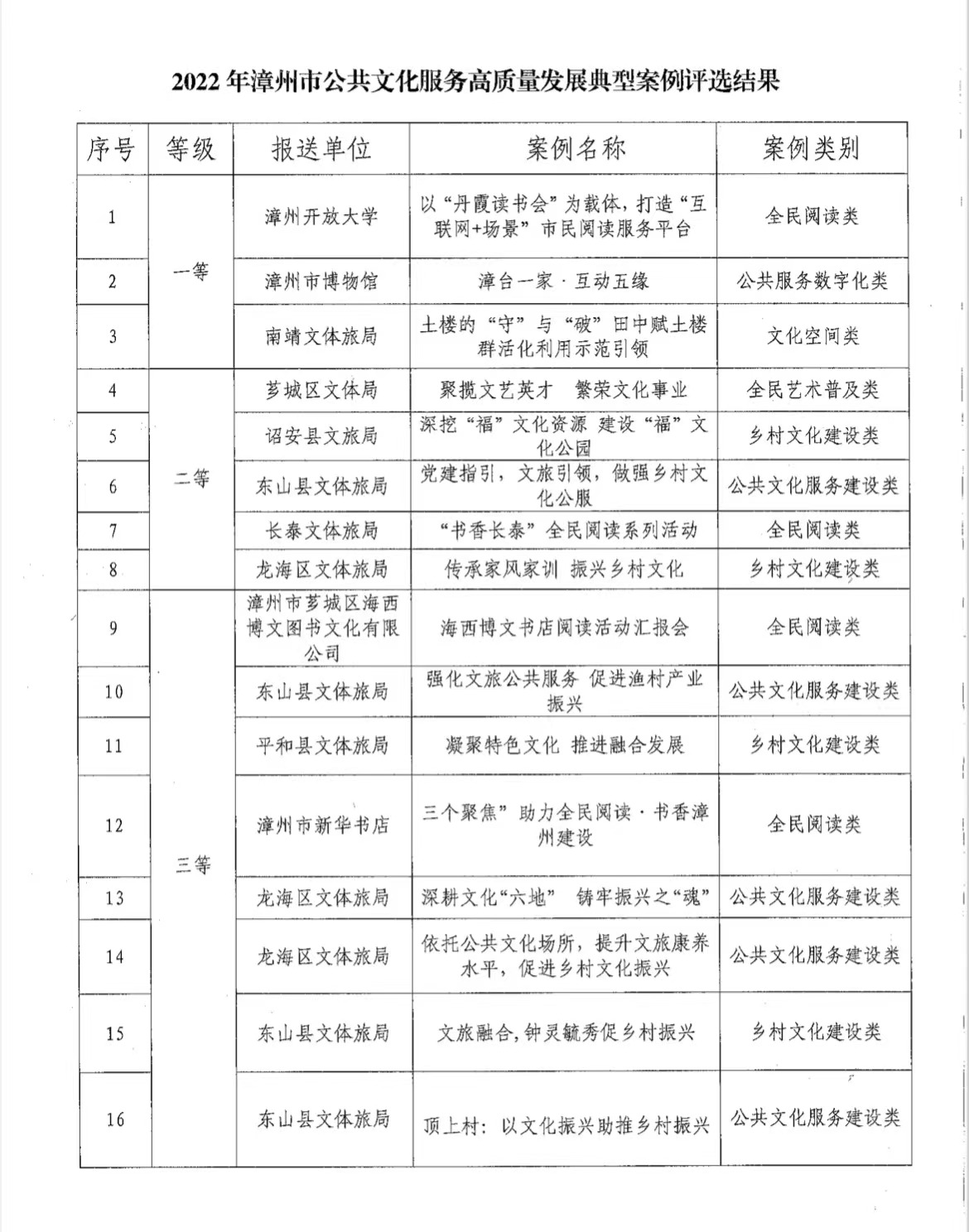 为推动公共服务高质量发展,发挥典型案例示范带动作用,根据《福建省文化和旅游厅 中共福建省委宣传部 福建省发展和改革委员会关于开展公共文化服务高质量发展典型案例的通知》要求,漳州市文旅局联合市委宣传部、市发改委对市直文旅部门、各县(区)人民政府推荐上报的16个公共服务高质量发展案例进行遴选。经过专家严格的评选,漳州开放大学申报的《以“丹霞读书会”为载体,打造“互联网+场景”市民阅读服务平台》(全民阅读类)以一等奖的好成绩被推选参加全省公共文化服务高质量发展典型案例评选。