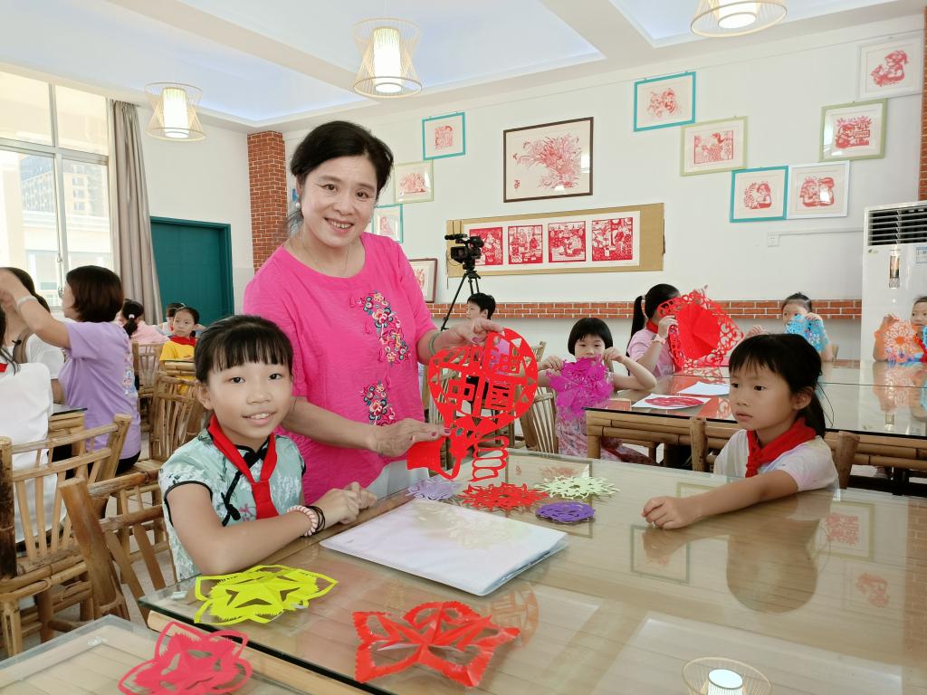 多年来,她始终致力于剪纸艺术的传承工作。她常年受聘于闽南师范大学、漳州市老年大学、漳州实验小学等学校,学生中既有小娃娃,也有退休老干部。近年来,她还参与艺术扶贫,定期为平和县崎岭小学的孩子们授课。她大力推动优秀传统文化传承保护工作,积极参加省、市和漳州市社区大学组织的“非遗”进学校进社区活动,指导高校、中小学学生学习剪纸技艺,奉献精湛的剪纸艺术表演。在历次海内外剪纸艺术展示活动中,张峥嵘创造了一种全新的剪纸展示模式,令人叹为观止:一把剪刀一张纸,手脑并用,边唱边剪。舞止歌停,手中纸就随心所欲剪成一幅生动迷人的作品来,直叫全场观众掌声四起,大呼不可思议。张峥嵘的台风相当亲民,她永远保持着灿烂的二度微笑,身影步伐轻盈灵动,吐词咬字轻松自如,总是给人留下美好的印象。