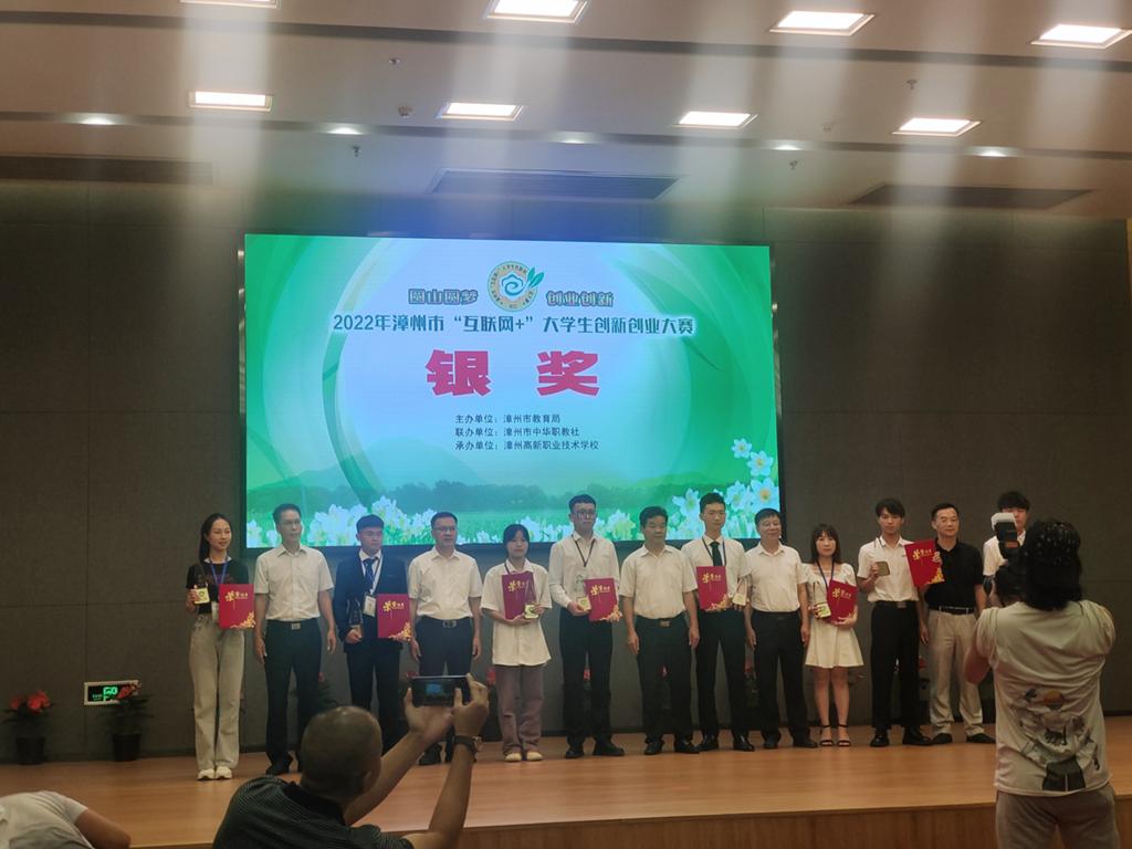 漳州开放大学2021秋季茶艺与茶叶营销专业(专科)学生简青燕负责的《乡村振兴与大健康同行》项目和2021春季工商管理专业(本科)学生杨达锋负责的《全国首创之马克笔智能检测系统》项目,在柯菁和林贤元老师指导下参加比赛,并进入决赛,经过激烈角逐,从128个参赛项目中脱颖而出,分别获得金奖(位列第一)和银奖的好成绩。《乡村振兴与大健康同行》同时获得“十佳人气奖”。