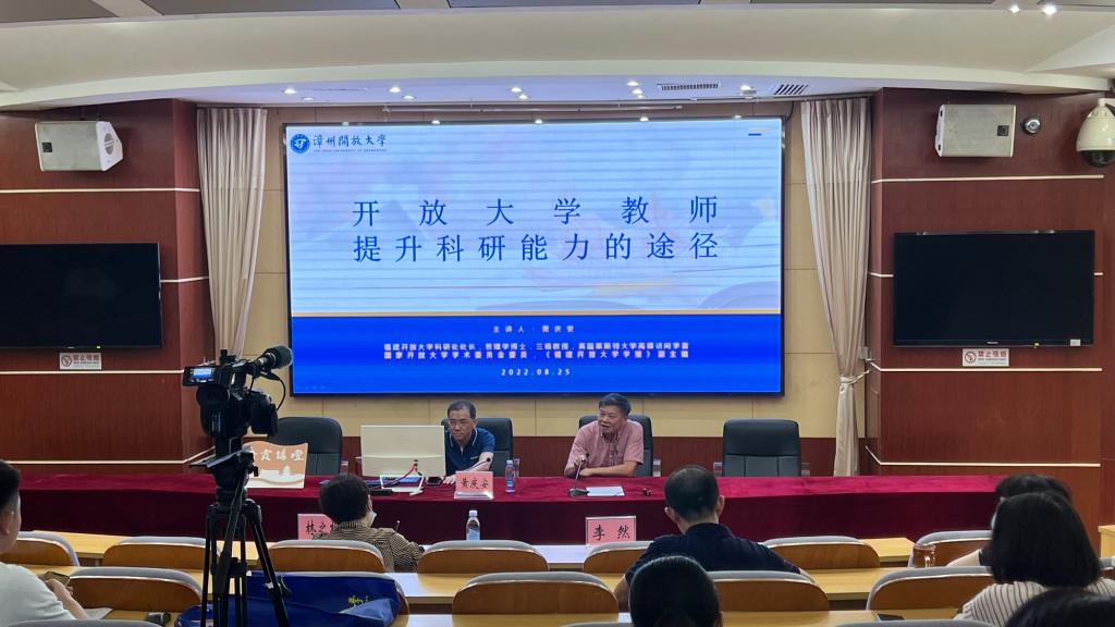 8月25日,漳州开放大学邀请福建开放大学科研处处长、管理学博士、三级教授黄庆安做客“丹霞讲坛”,开展题为“开放大学教师提升科研能力的途径”专题讲座。讲座由漳州开放大学党委书记、校长李然主持,党委副书记林之枫参加。全校专业技术人员和部分职工聆听了讲座。