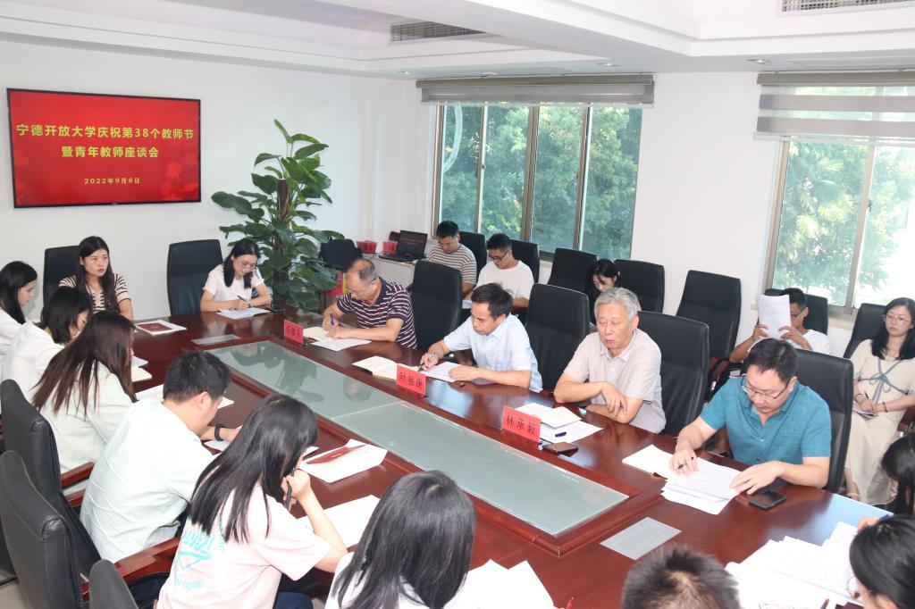 9月8日下午,宁德开放大学召开庆祝第38个教师节暨青年教师座谈会,学校党委书记、校长叶祖庚,副校长林承毅,党委副书记李健平,相关处室负责人以及全体青年教师参加座谈会。会议由李健平主持。