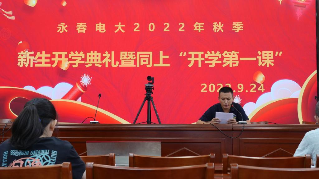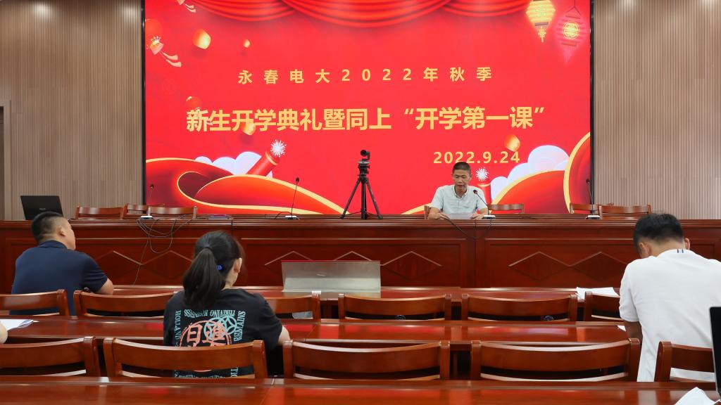 9月24日上午,福建开放大学举办2022年秋季新生开学典礼暨同上“开学第一课”,永春电大在县教育中心六楼会议室设立分会场,以线上线下相结合的方式参加活动后,在分会场举办永春电大2022年秋季开学典礼暨同上“开学第一课”,永春县教育局局长陈志宏、三级调研员李锦江,永春电大全体教职工及2022年秋季部分新生参加。