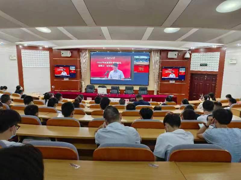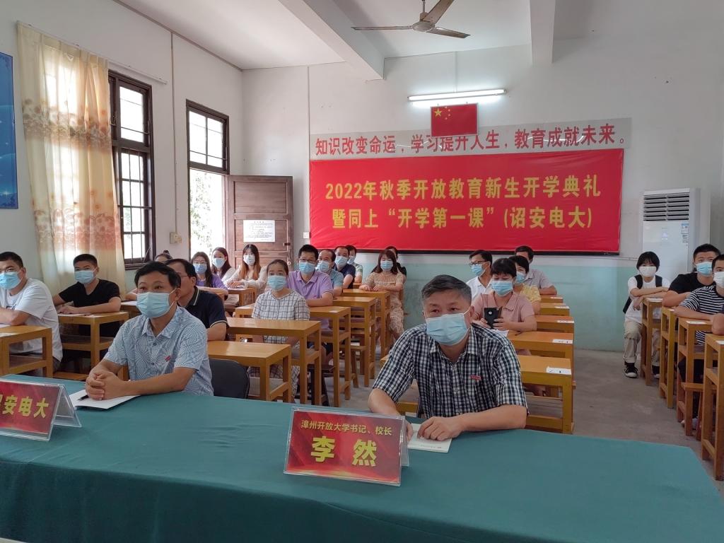 9月24日上午,漳州开放大学组织2022年秋季新生和部分教师在行知楼三楼双向视频大会议室参加全省开放教育新生开学典礼暨同上“开学第一课”活动。开学典礼主会场设在省校桂山校区智慧教室,各市县开(电)大设立分会场,主、分会场通过双向视频互联互通,并向师生和社会在线实况直播。漳州开放大学党委书记、校长李然在诏安电大参加典礼,党委副书记林之枫、副校长吕峰鹏在本校现场参加活动。